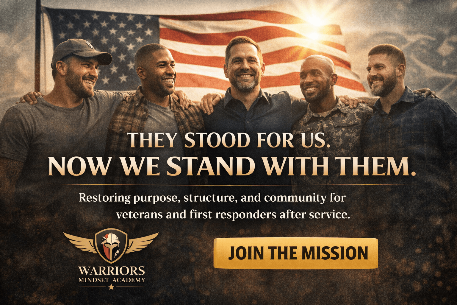 Warrior’s Mindset Academy helps veterans and first responders transition from service to significance by rebuilding purpose, connection, and direction through community-driven support and practical reintegration tools. 100% of our services are provided at no cost to our Nation’s Heroes.